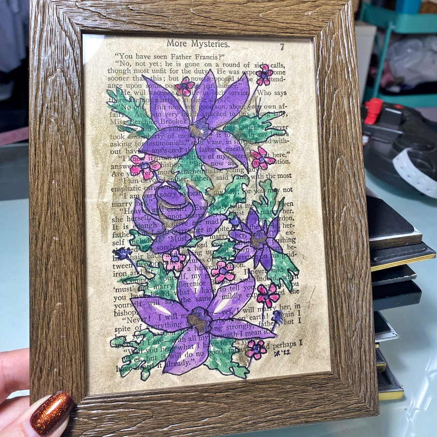 Each painting is 5×7 inches, set in a vintage-style frame, and ready to display. Perfect for book lovers, cottagecore enthusiasts, or anyone who enjoys unique, eco-friendly art with character.
