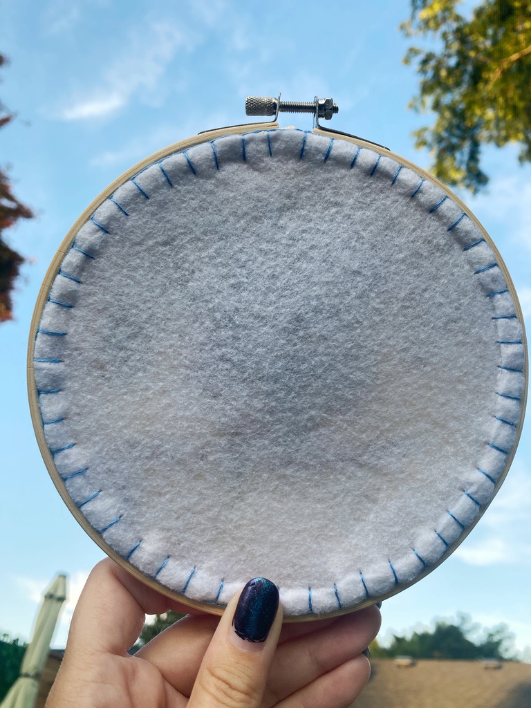Every embroidery piece begins with high-quality fabric and threads carefully chosen for colour and texture. Each design is stitched entirely by hand — no machines — making every letter, flower, figure, or motif one-of-a-kind. Hand embroidered, the process highlights slow fashion values and ensures durability while keeping a polished, artisan finish. Once the design is finished, a felt backing is added so it can be hung right on the wall!
