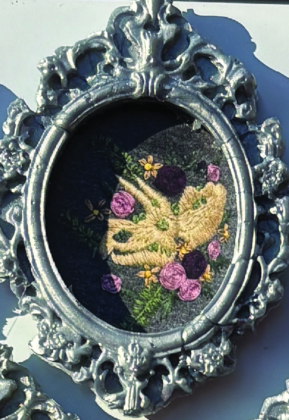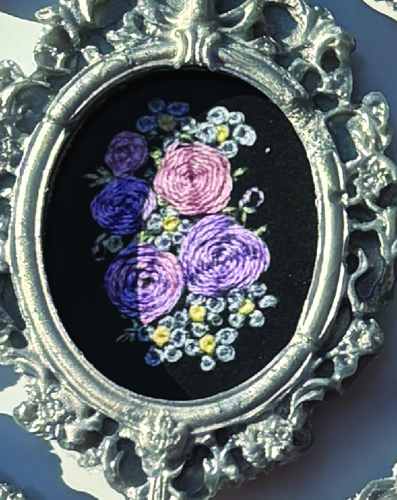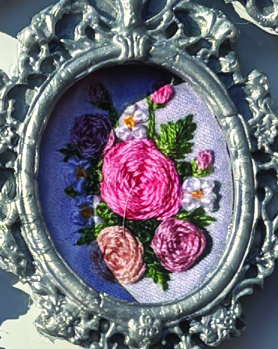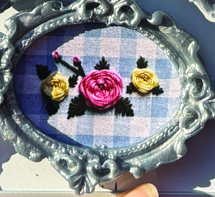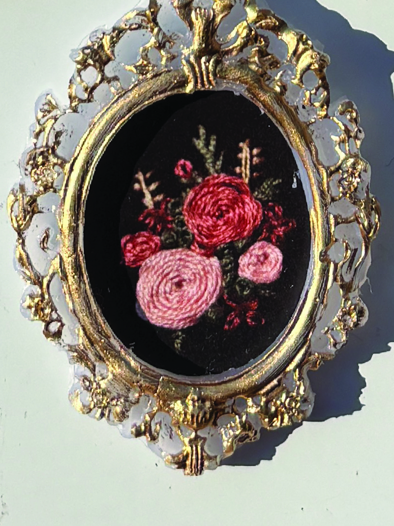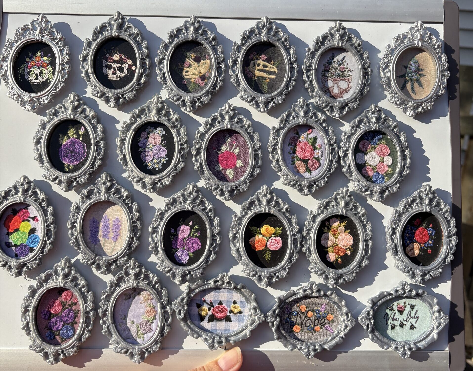 Bring a touch of artful charm to your everyday life with these embroidery prints turned into magnets, each displayed in an elaborate, decorative frame. Each miniature painting is set in an ornate frame, turning your fridge, locker, or magnetic board into a curated art gallery.