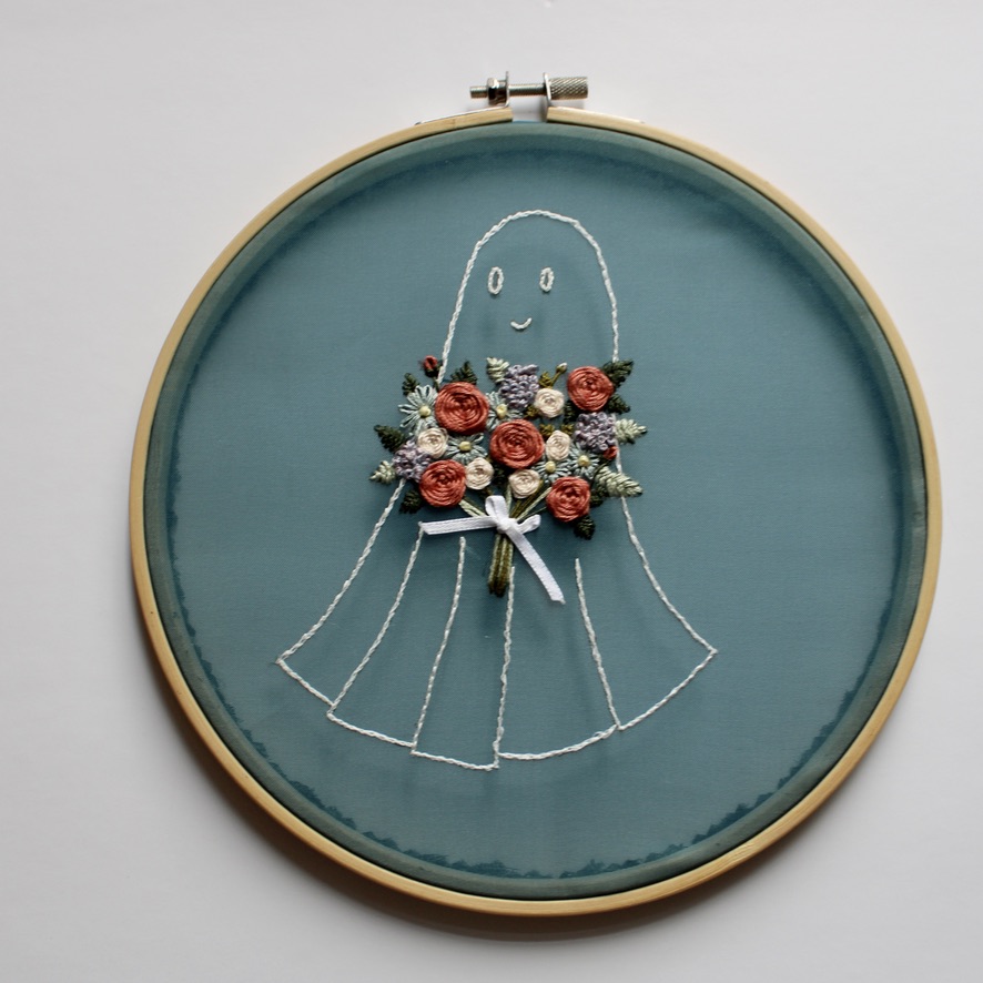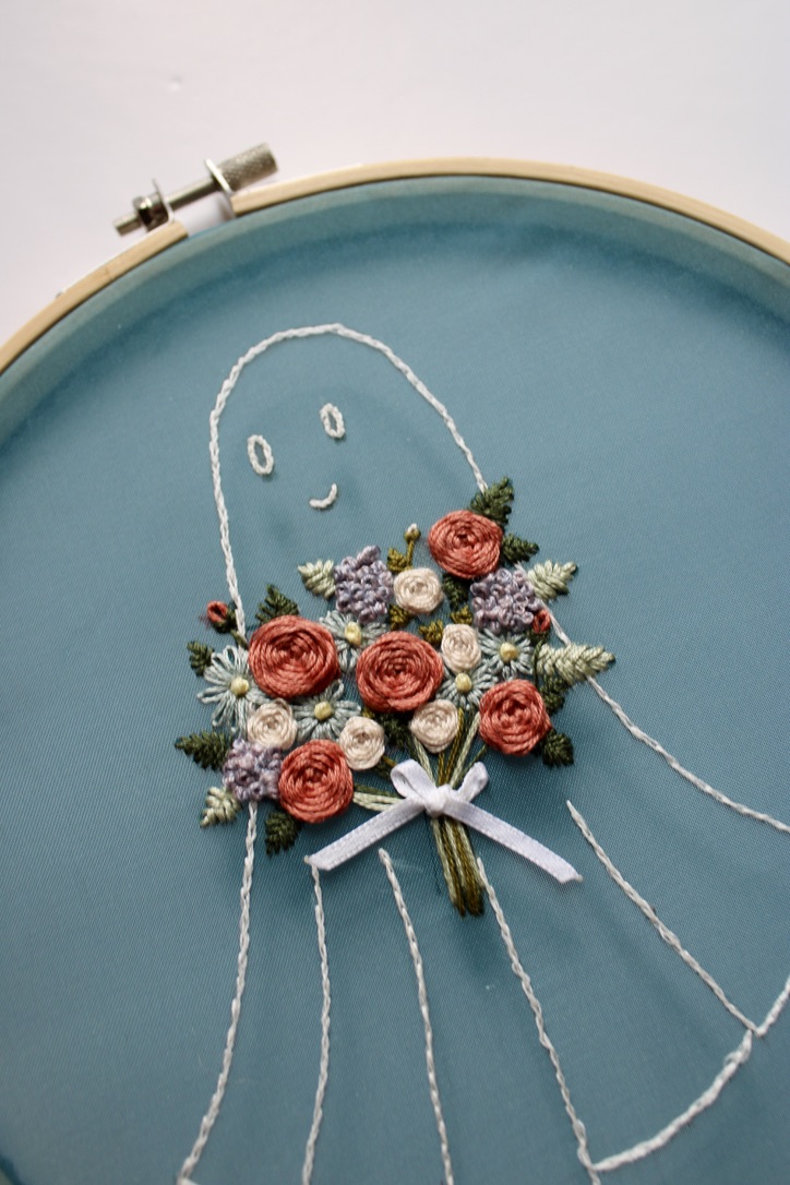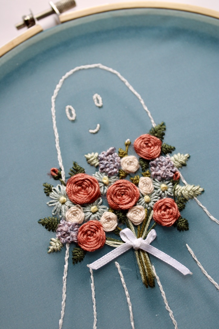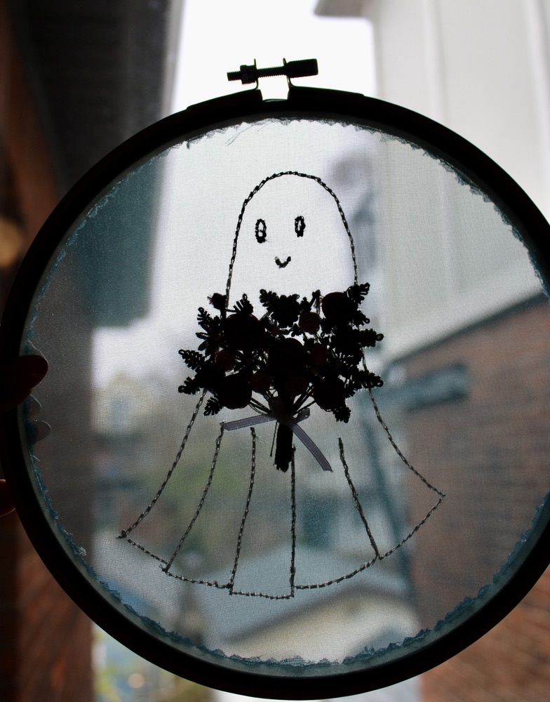 Add this ghostly bouquet embroidery hoop art to your space for a playful and cozy touch!