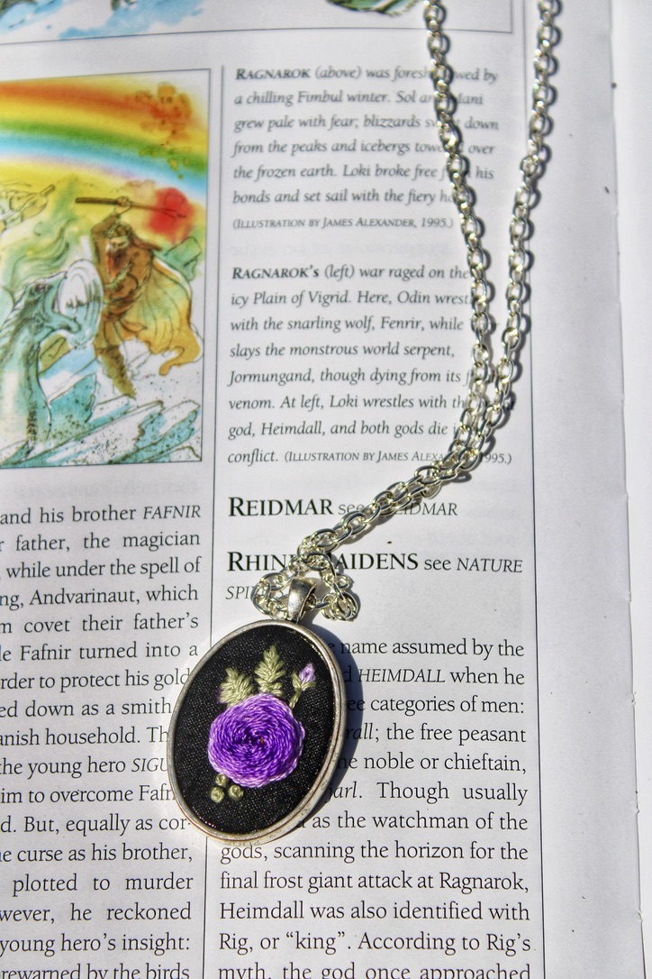 All pendants are hand embroidered using DMC embroidery floss.