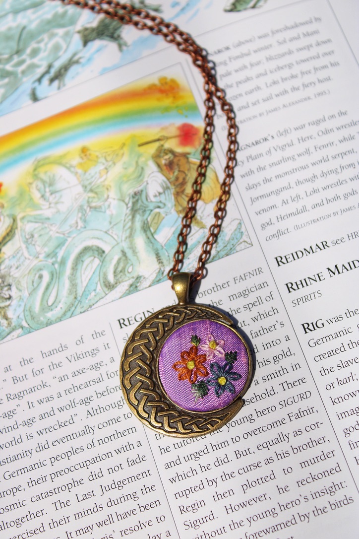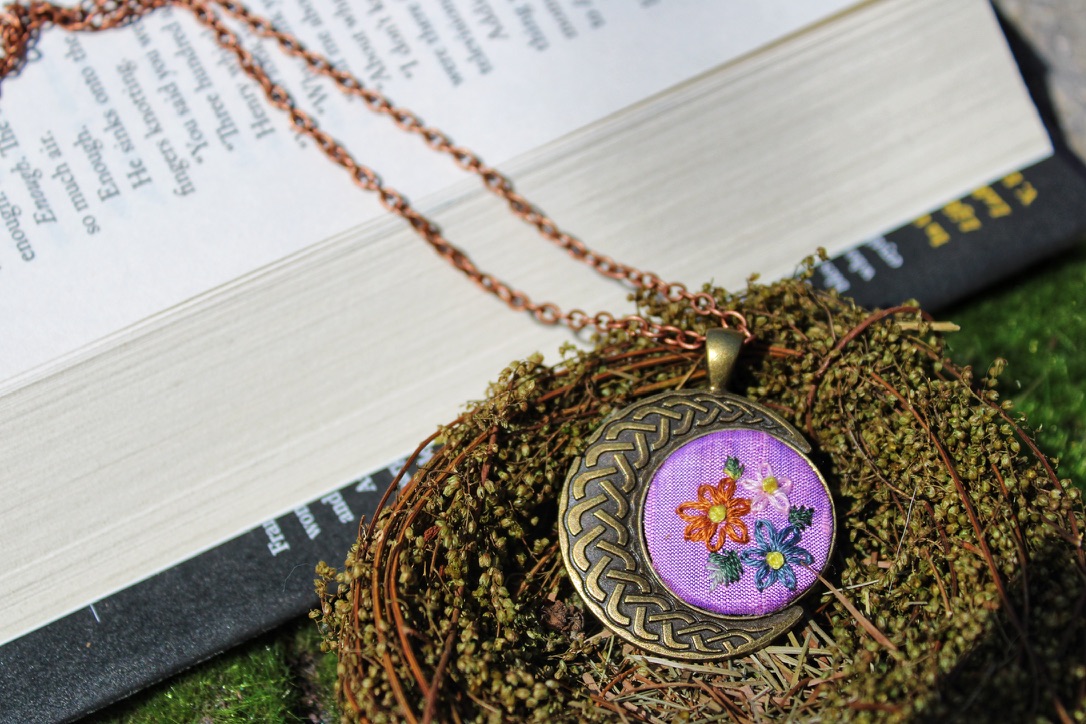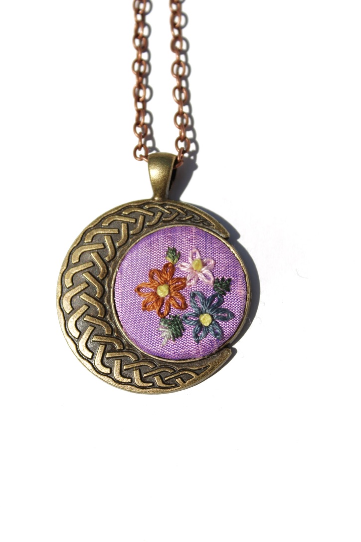 All pendants are hand embroidered using DMC embroidery floss.