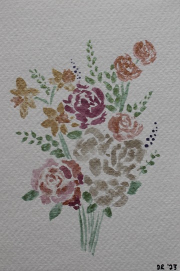 This 4×6″ original watercolour painting features a timeless bouquet of roses and wild blooms, painted in soft blush, muted amber, and earthy tones. Each brushstroke captures the romantic charm of a freshly gathered arrangement, blending vintage-inspired colours with modern cottagecore style. Painted on textured watercolour paper and signed by the artist, this piece is perfect for framing in a natural wood frame or gifting to someone who loves floral art. A delicate, one-of-a-kind piece to bring warmth and elegance into any room.