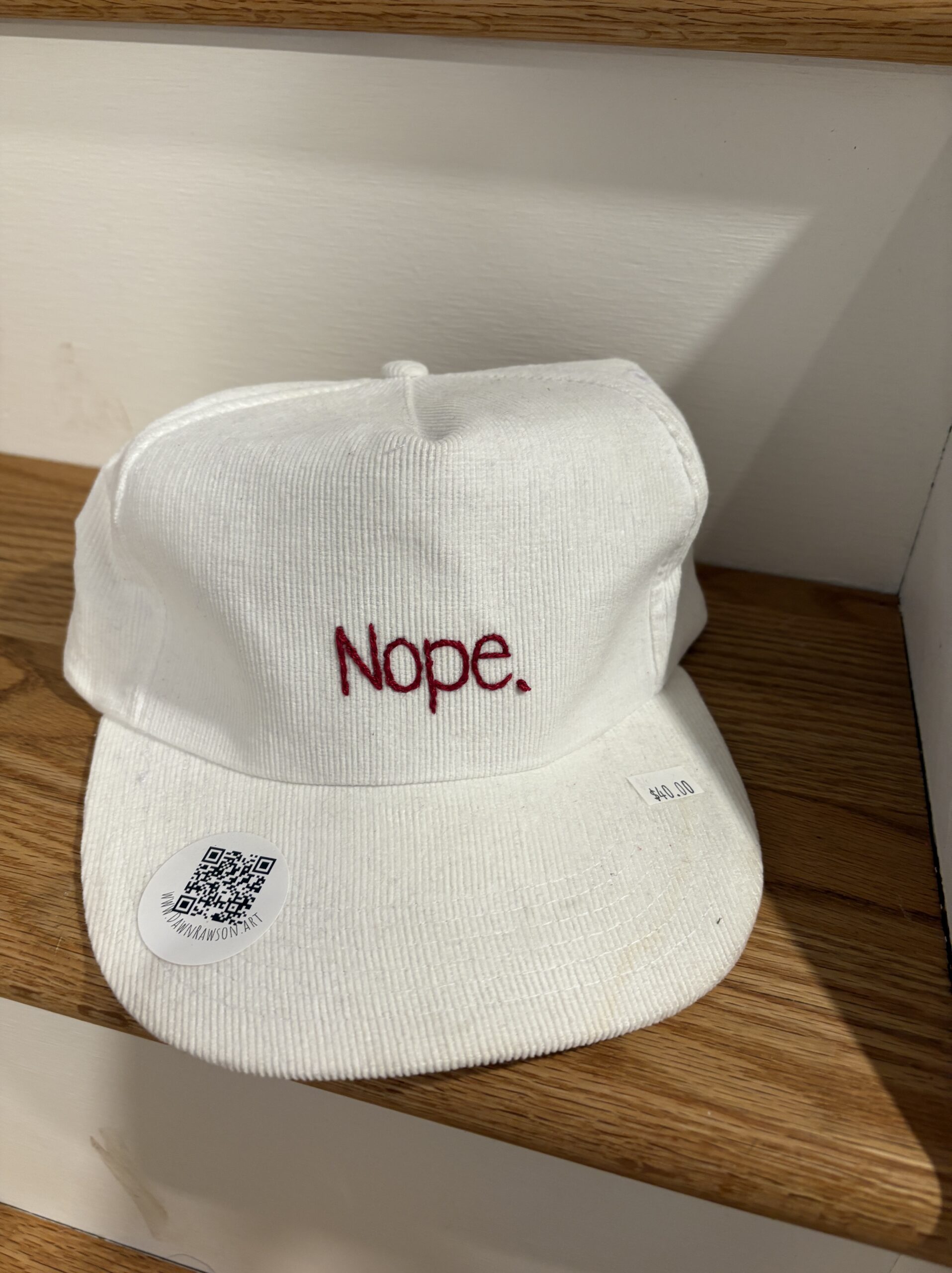 This minimalist white corduroy baseball hat says it all — NOPE, in bold red embroidery. A soft corduroy texture adds vintage flair to your casual style, while the cheeky statement makes it your go-to hat for bad moods, lazy days, or dodging social plans.